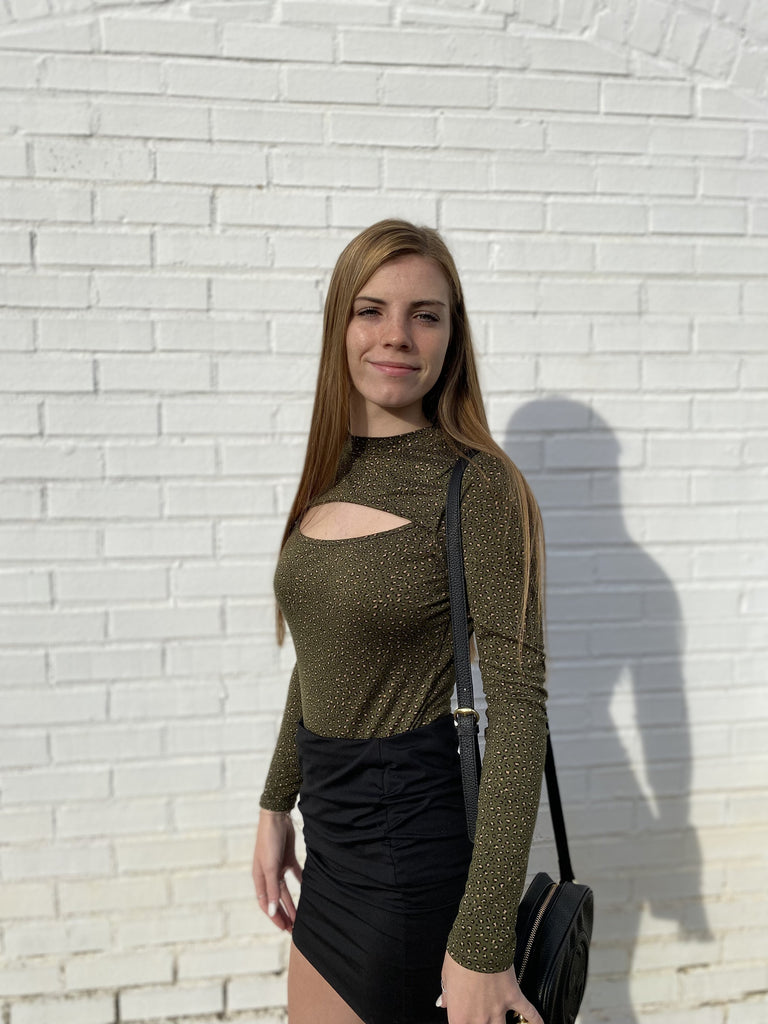 Admire From Afar Olive Cheetah Print Keyhole Bodysuit